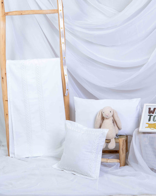 Prix promotionnel 500.00 dhParure de lit bébé brodé en coton blanc