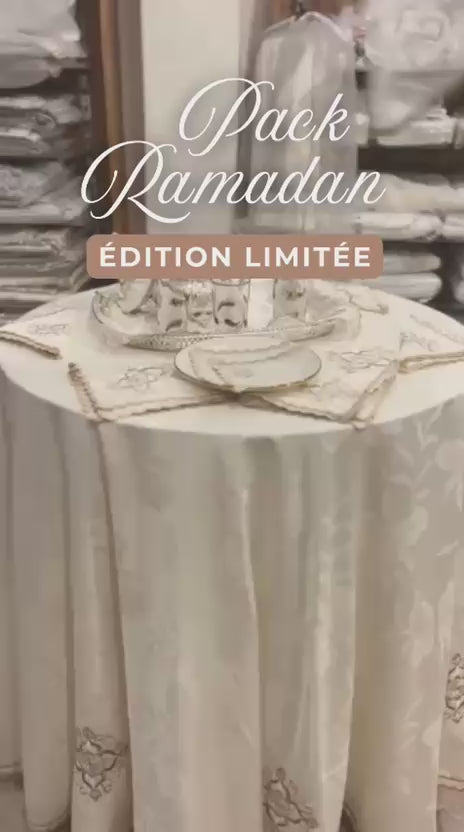 Transformez vos iftars et soirées de Ramadan en moments d'exception avec notre Pack Ramadanesque Table Ronde – Collection Terre Lumineuse. Spécialement conçu pour les tables rondes, ce pack complet réunit tous les essentiels d'une table raffinée et élégante.